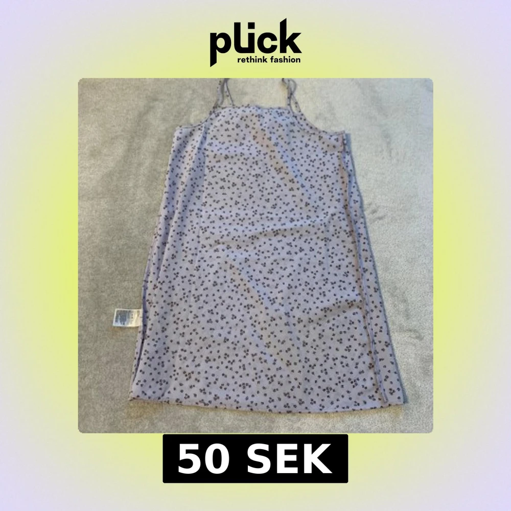 Söt ljusblå klänning med små blommor i ett mörkare mönster. Klänningen är ärmlös med smala axelband och har en rak passform. Perfekt för varma dagar!