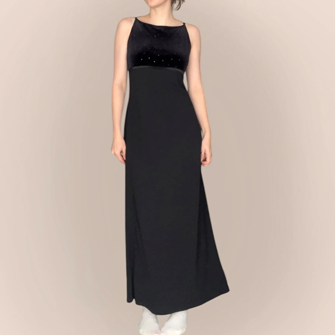 Elegant svart långklänning från Byer Too! Muk överdel i sammet och en lång, flytande kjol. Jag på bilden har strl 36 på överdelar och är 170cm lång. Klicka på köp nu <33