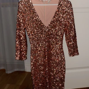 Säljer denna klänning då den inte passar mig längre. Rosa paljetter på och mått är XS. Dock så anser jag att denna klänning passar någon som är lite kortare i längden eftersom att klänningen inte är lång.