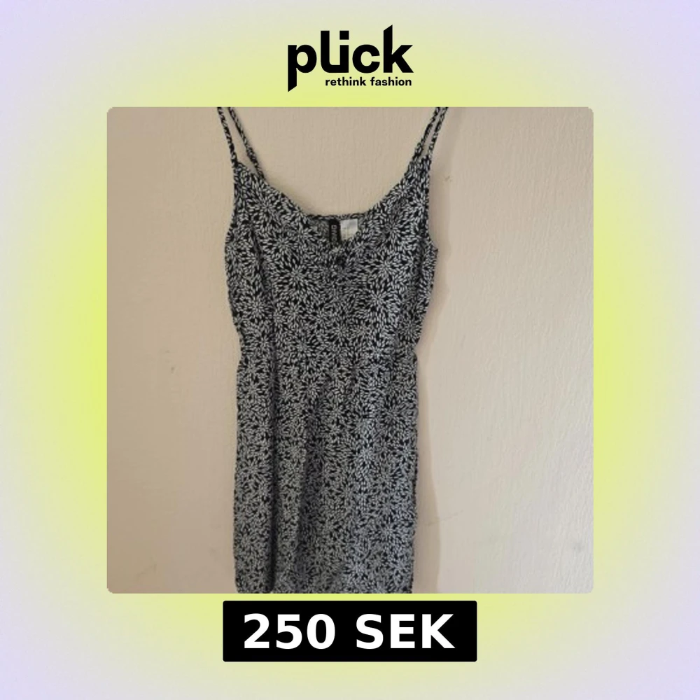 Supersöt kortklänning från H&M Divided i marinblått med vitt blommönster. Klänningen har smala axelband, knytning framtill och en lätt, flowy passform. Perfekt för varma dagar och enkel att styla med sneakers eller sandaler.
