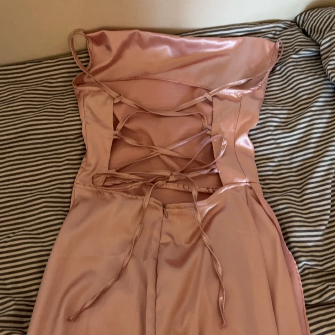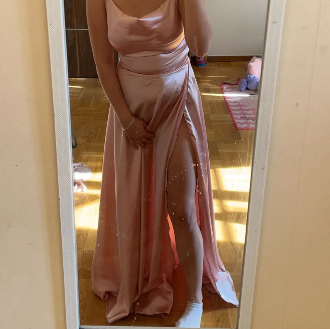 Jag säljer nu min balklänning som inte kommer till användning längre. Den är använd en gång och testad en gång. Inga skador. Går att knyta i ryggen som man vill ha den. En lång slits på höger sida . Den är lång på mig som är 164 (kolla bild)