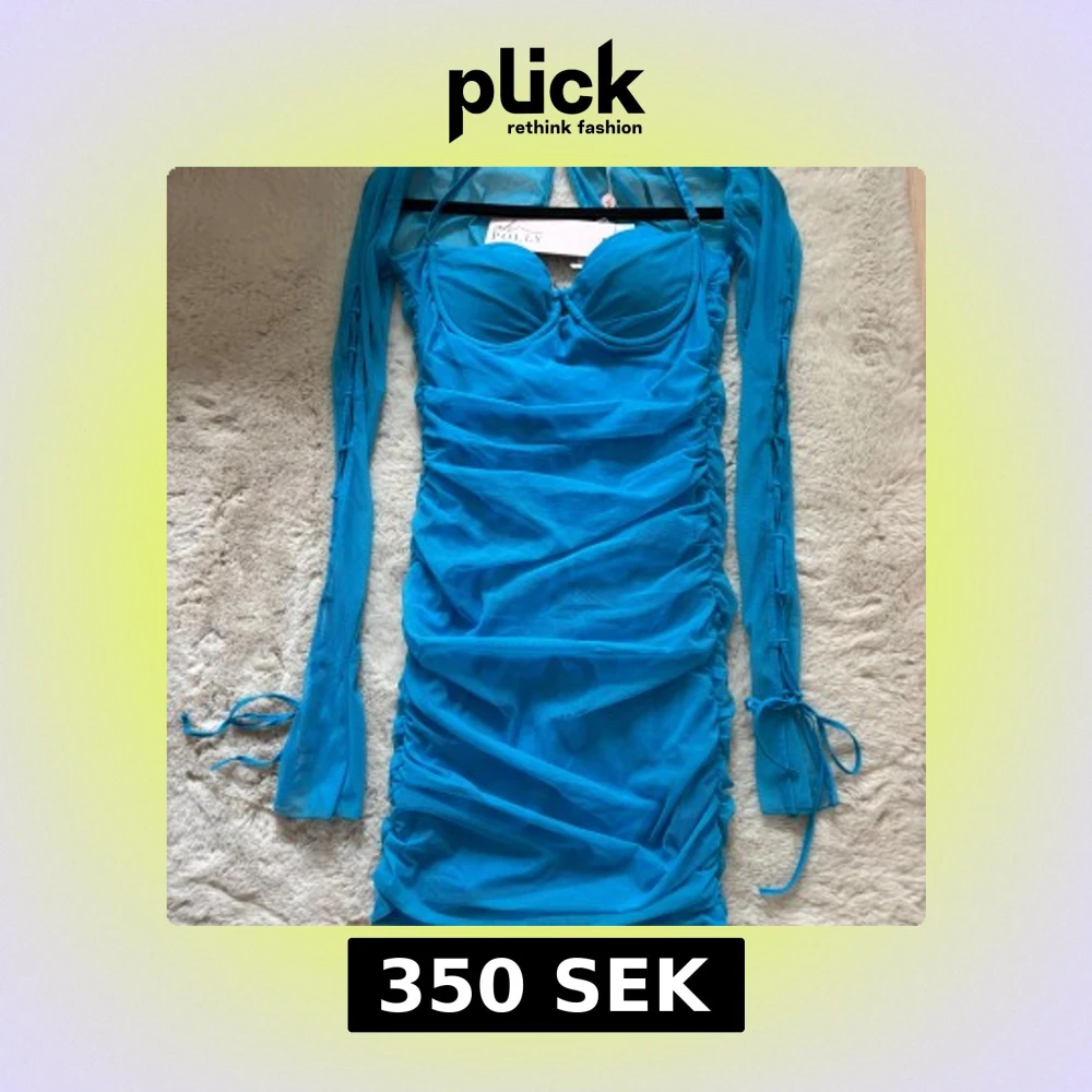Snygg blå klänning från Oh Polly med långa ärmar och en tight passform. Klänningen har en rynkad design och knytband vid ärmsluten. Perfekt för en kväll ute! 💙