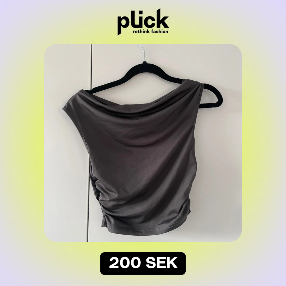Snygg mörkgrå axelbandslös klänning i ett mjukt och stretchigt material. Perfekt för en kväll ute eller en fest. Den har en elegant drapering på sidan som ger en fin siluett. Klänningen är lång och passar bra till både sommar och höst.
