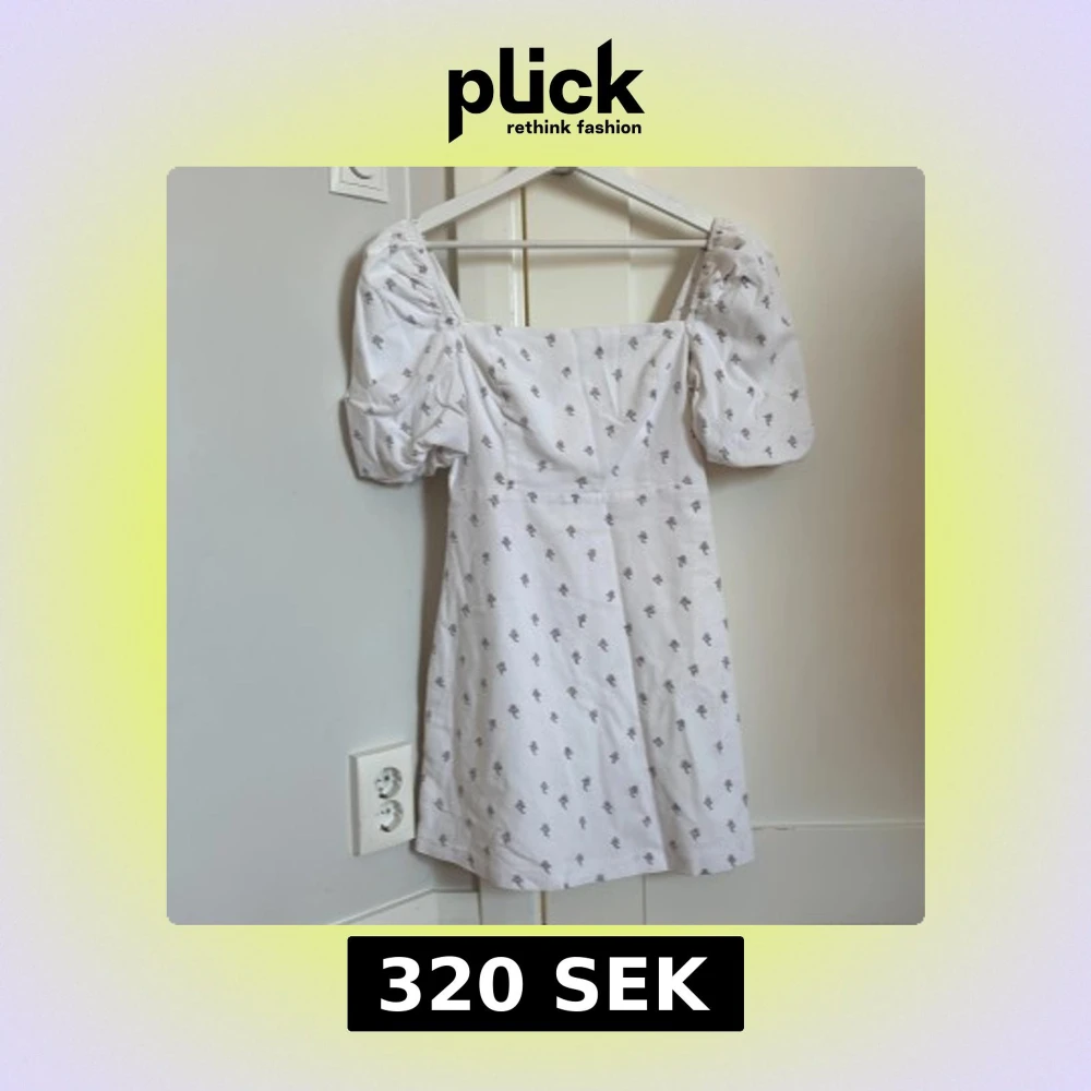 Charmig vit klänning från Glamorous med puffiga kortärmar och ett diskret blommönster. Klänningen har en fyrkantig urringning och en dragkedja i ryggen för enkel påklädning. Perfekt för en somrig look! Klänningen är använd ca 3 gånger därför i nyskick!
