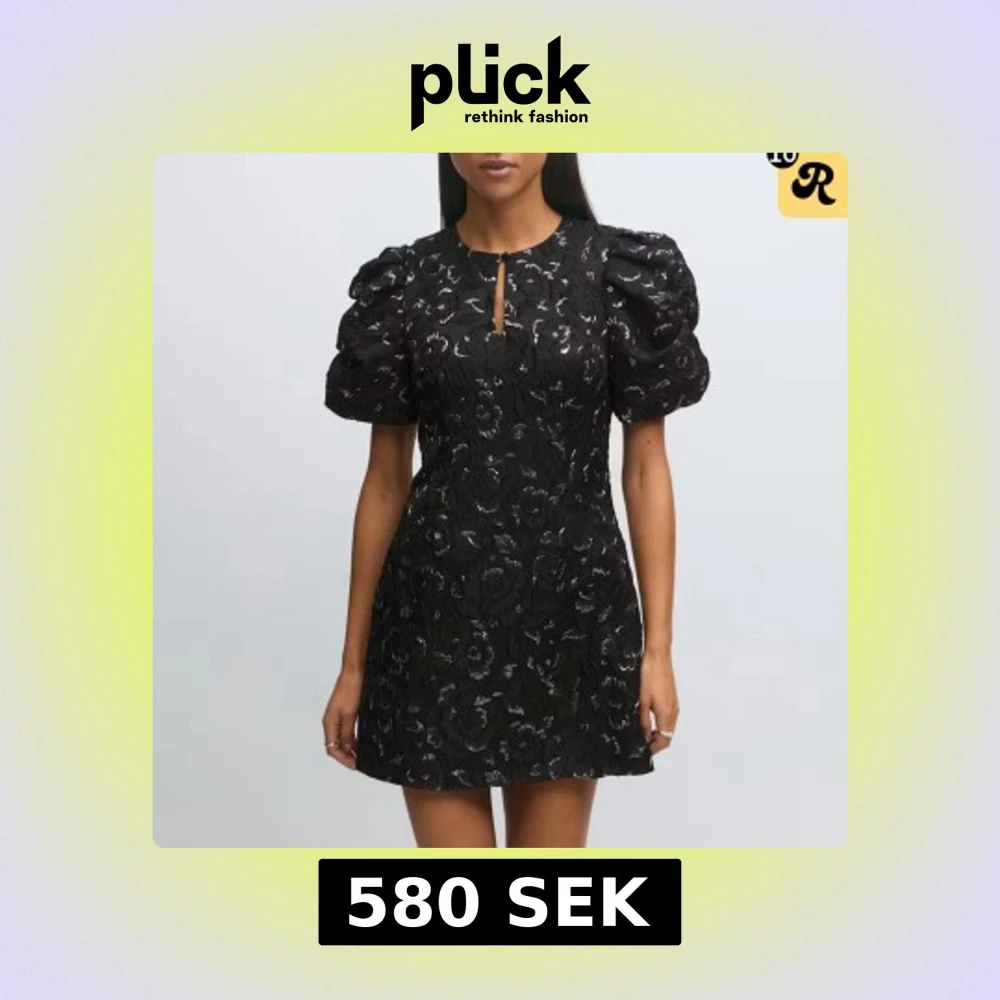 Svart blommig kort puffärmsklänning