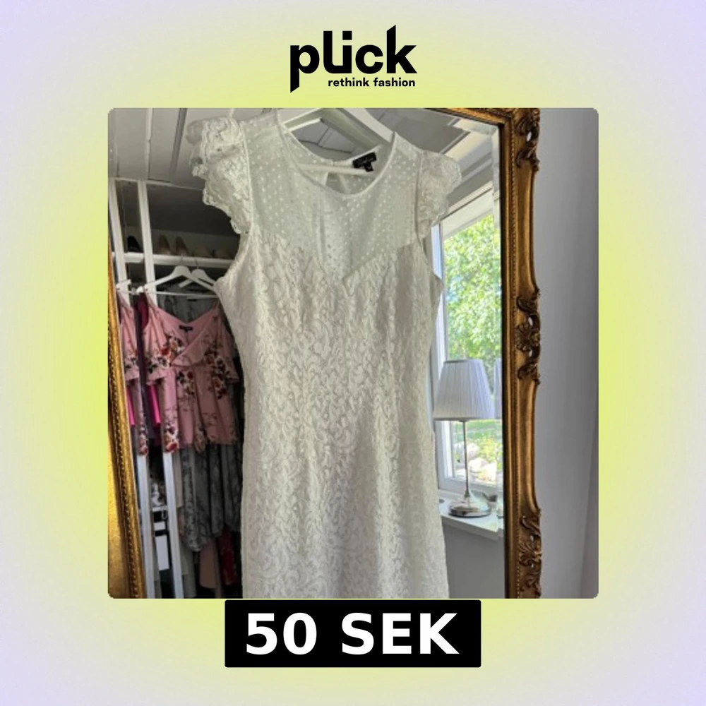 Vit spetsklänning - Säljer en elegant vit spetsklänning med korta ärmar och ett vackert blommönster. Klänningen har en rund hals och en figursydd passform som ger en feminin siluett. Perfekt för sommarens alla tillfällen. Använd en dag, som ny!🥰