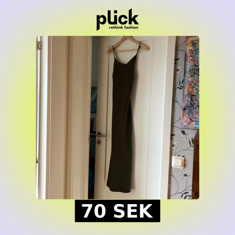 Lång mörk grön klänning (vet ej marken). Tror att storleken är S, typ 36/38.