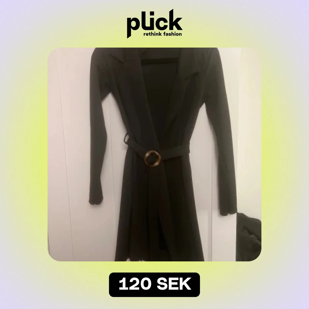 Svart klänning i mjukt material med tillhörande bälte i midjan. Slutar lite ovanför knät på en som är 160 cm lång. Använd 1 gång.