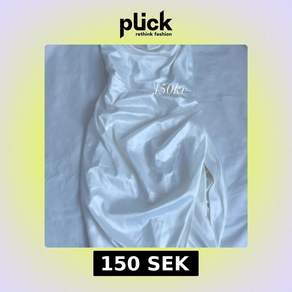 Elegant vit sidenklänning med en slits på sidan. Perfekt för en stilren look med sin glänsande yta och mjuka material.