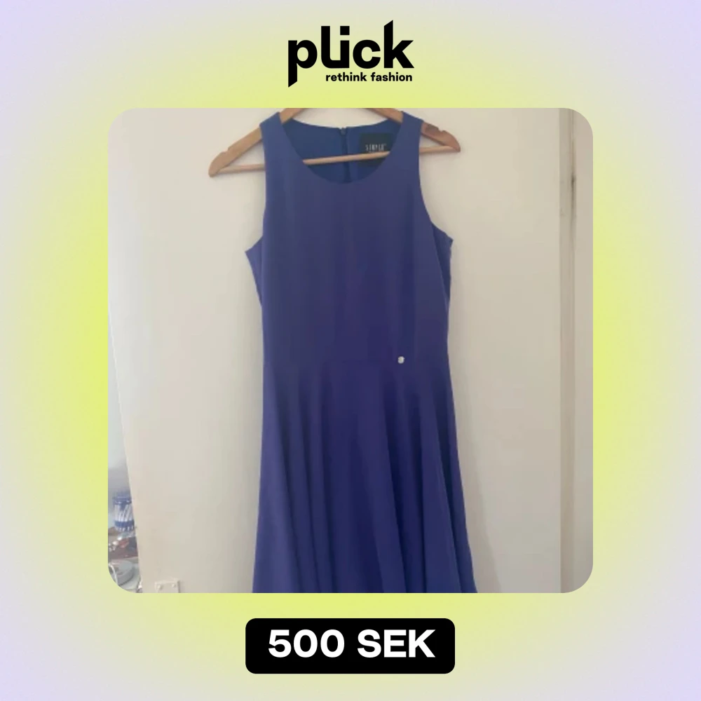 Säljer en elegant blå klänning från Simple. Den är ärmlös och har en rund halsringning. Klänningen är i ett lätt och flödande material som ger en fin passform. Perfekt för sommarens fester eller andra speciella tillfällen. Den har en dragkedja i ryggen för enkel på- och avklädning. Oanvänd.