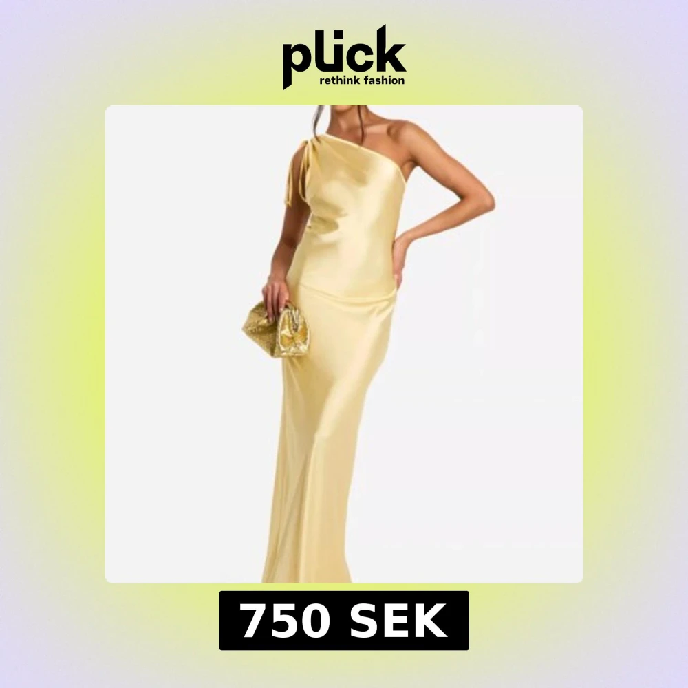 Supersnygg långklänning i champagnefärgad satin med oneshoulder och knyt-detalj på axeln. Klänningen har en elegant, slät siluett som faller snyggt längs kroppen. Perfekt för dig som vill sticka ut med en lyxig och trendig look.