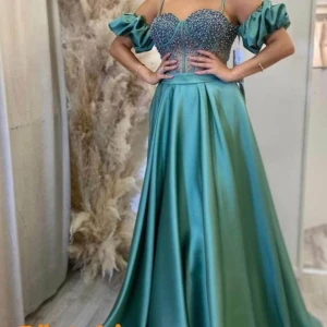 Klänningen är i storlek 36 och använd 1 gång. Den är som ny samt kemtvättad. Klänningen är köpt från SE fashion för 6900kr. Säljer klänningen för 2500kr. Följer med: Smala orginal banden samt off shoulder puffarna. Köparen står för frakt. Ingen retur!