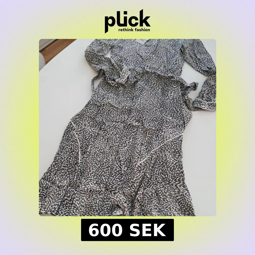 Snygg svartvit klänning från Part Two med ett unikt mönster. Klänningen har långa ärmar och en elegant krage. Tillverkad i 100% viskos, vilket ger ett mjukt och bekvämt fall. Perfekt för en stilren look. Klänningen är helt ny med prislappen kvar!
