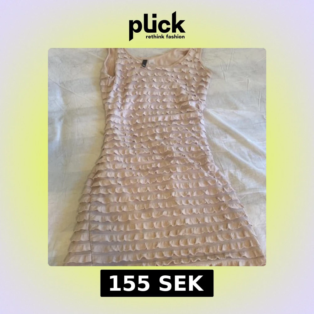Supersöt kort klänning i ljusbeige med volanger över hela framsidan. Ärmlös modell med rundad hals och figurnära passform. Materialet känns mjukt och stretchigt, perfekt för dig som gillar romantiska detaljer och en feminin look.