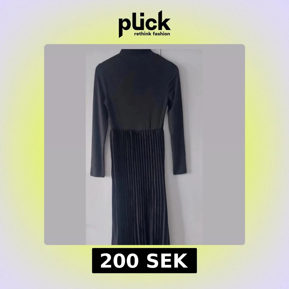 Säljer en svart långklänning med långärmad överdel och plisserad kjol. Klänningen har en elegant och stilren design, perfekt för speciella tillfällen. Materialet känns mjukt och följsamt.Passar även 36