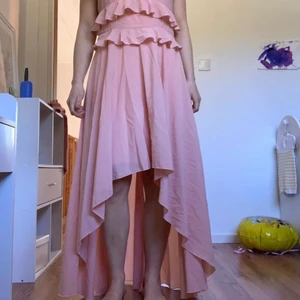 En finklänning i strl 38, dimrosa. Stretchig i tyg. Använd endast en gång till bröllop.