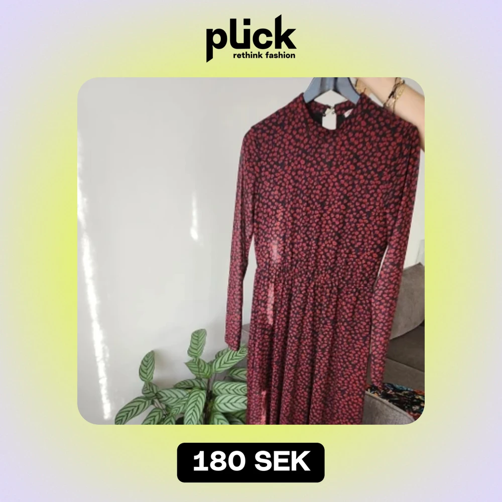 Lång svart och röd blommig klänning med genomskinlig ärm