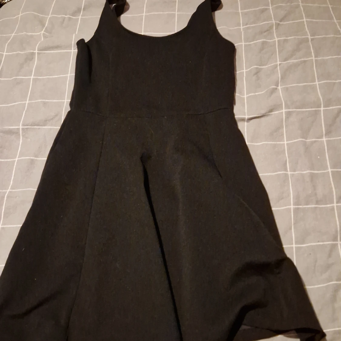 En svart, ärmlös kortklänning från H&M Divided med klassisk rund halsringning och lätt utställd kjol. Enkel och stilren design som passar perfekt till sneakers eller boots. Materialet känns mjukt och följsamt.