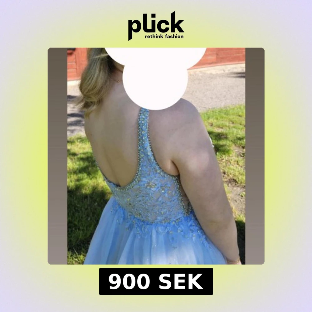 Säljer nu min älskade balklänning från märket maskara, använd 2 gånger. En ljusblå klänning med 4 lager på kjolen, 2 lager tyg+2 lager tyg. Smala axelband och pärlor+spets upptill. Är en 38 men passar även 36 (medium men passar en small)