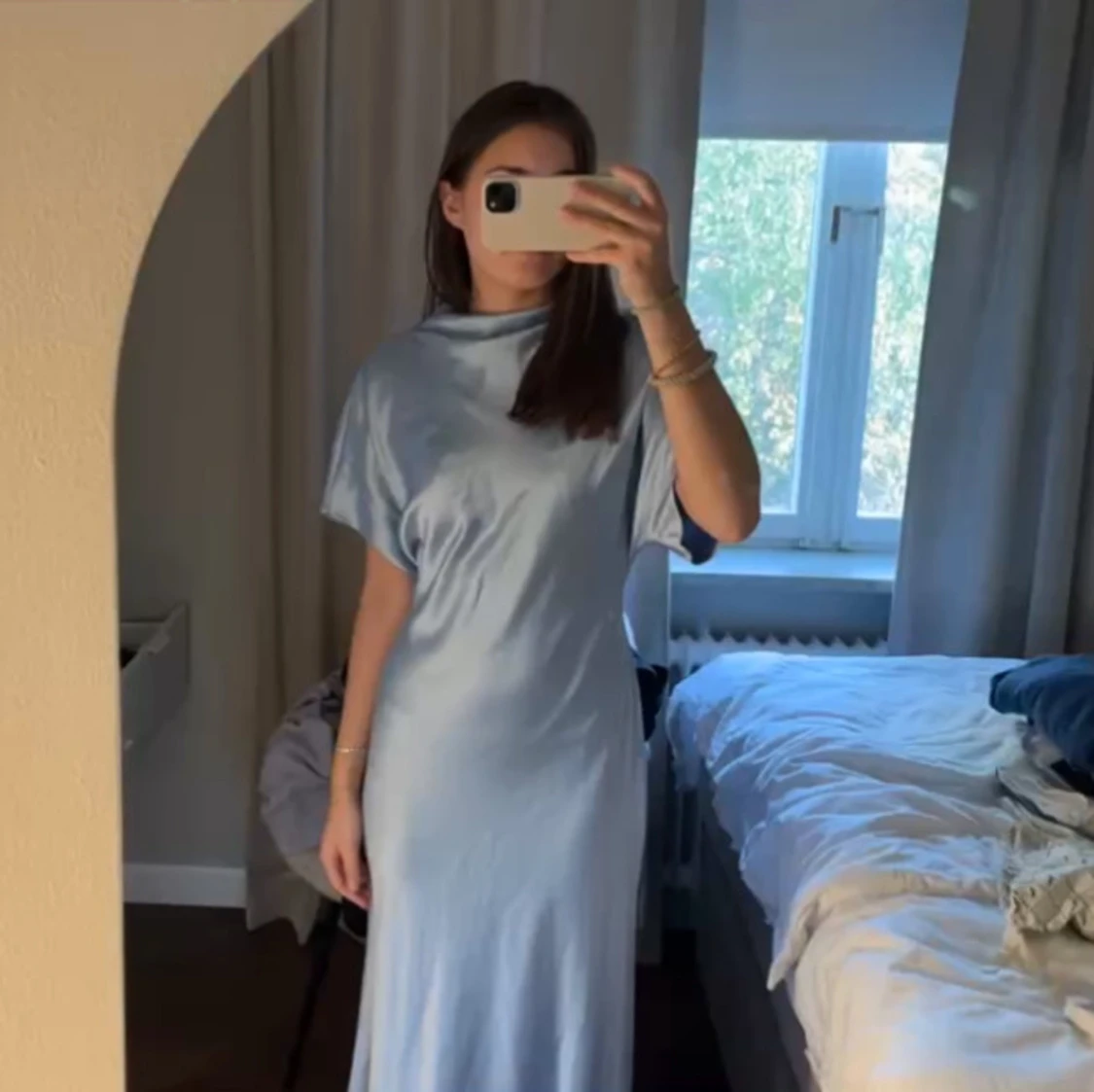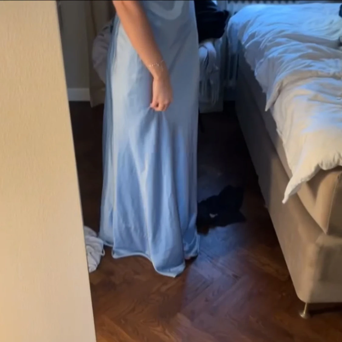 Superfin ljusblå långklänning från Malina i storlek 38, använd vid ett tillfälle. Nypris 4500kr