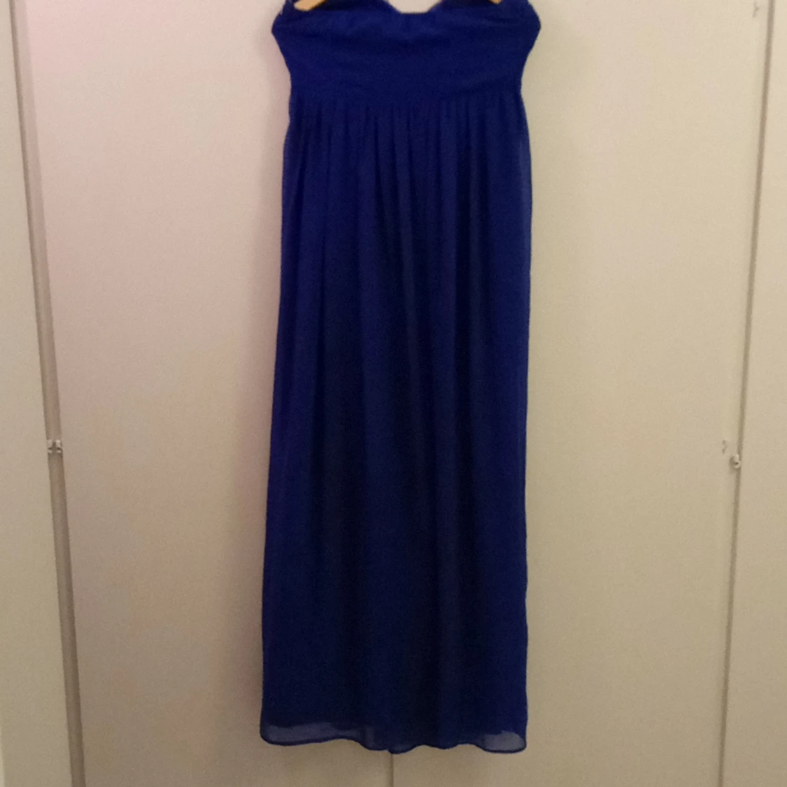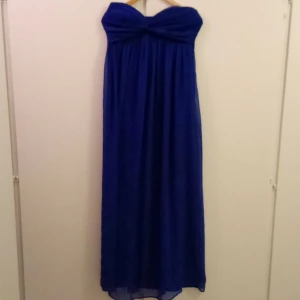 Mörkblå oarmad klänning som passar till fester helt ny nästan oanvänd otvättad. Skriv om intresse.