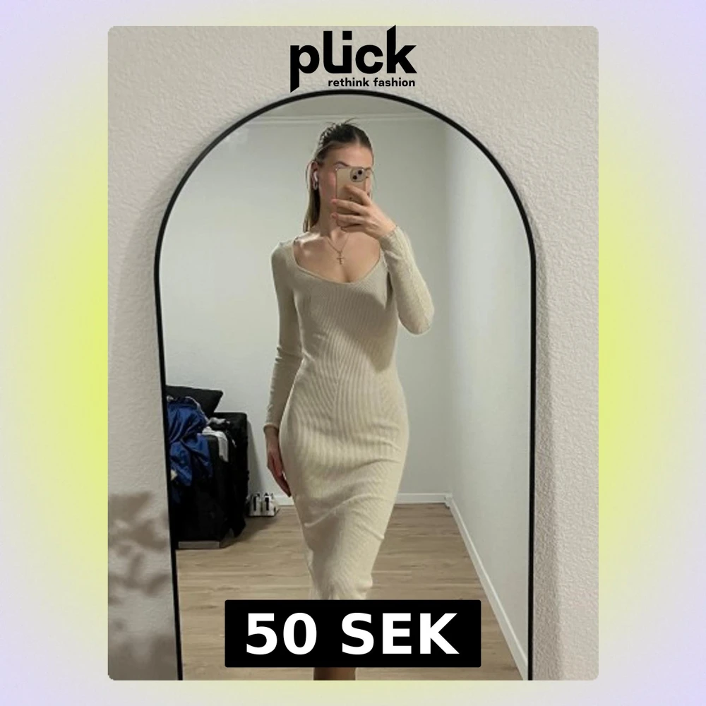 Säljer en beige ribbad långklänning med v-ringad hals och lång ärm. Klänningen har en snygg slits på sidan och sitter tight och figurnära. Perfekt för dig som gillar stilrena och enkla plagg med lite edge.