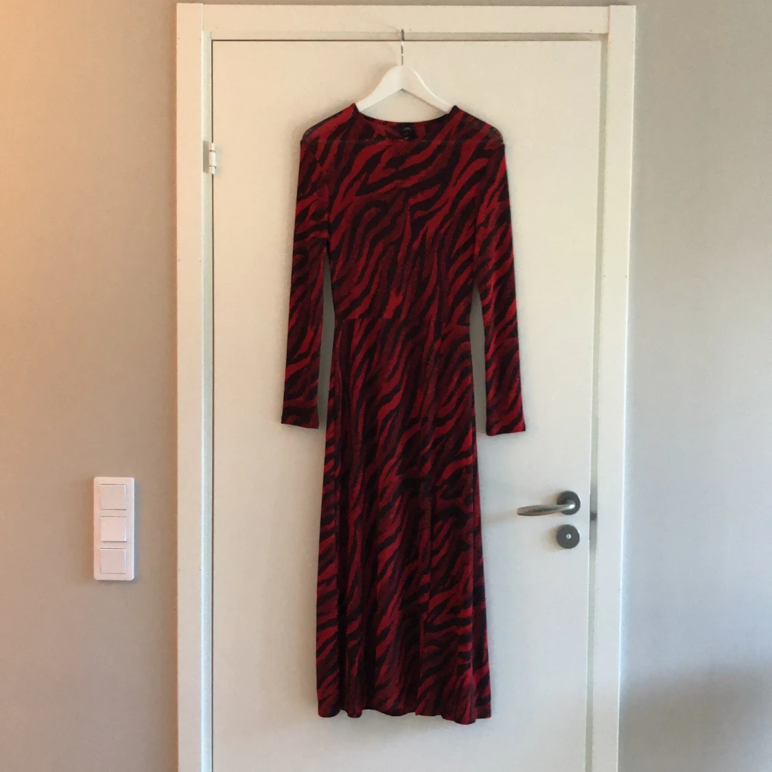 Röd och svart klänning i zebramönster! Tight modell som går ut nertill. Använd 1 gång.