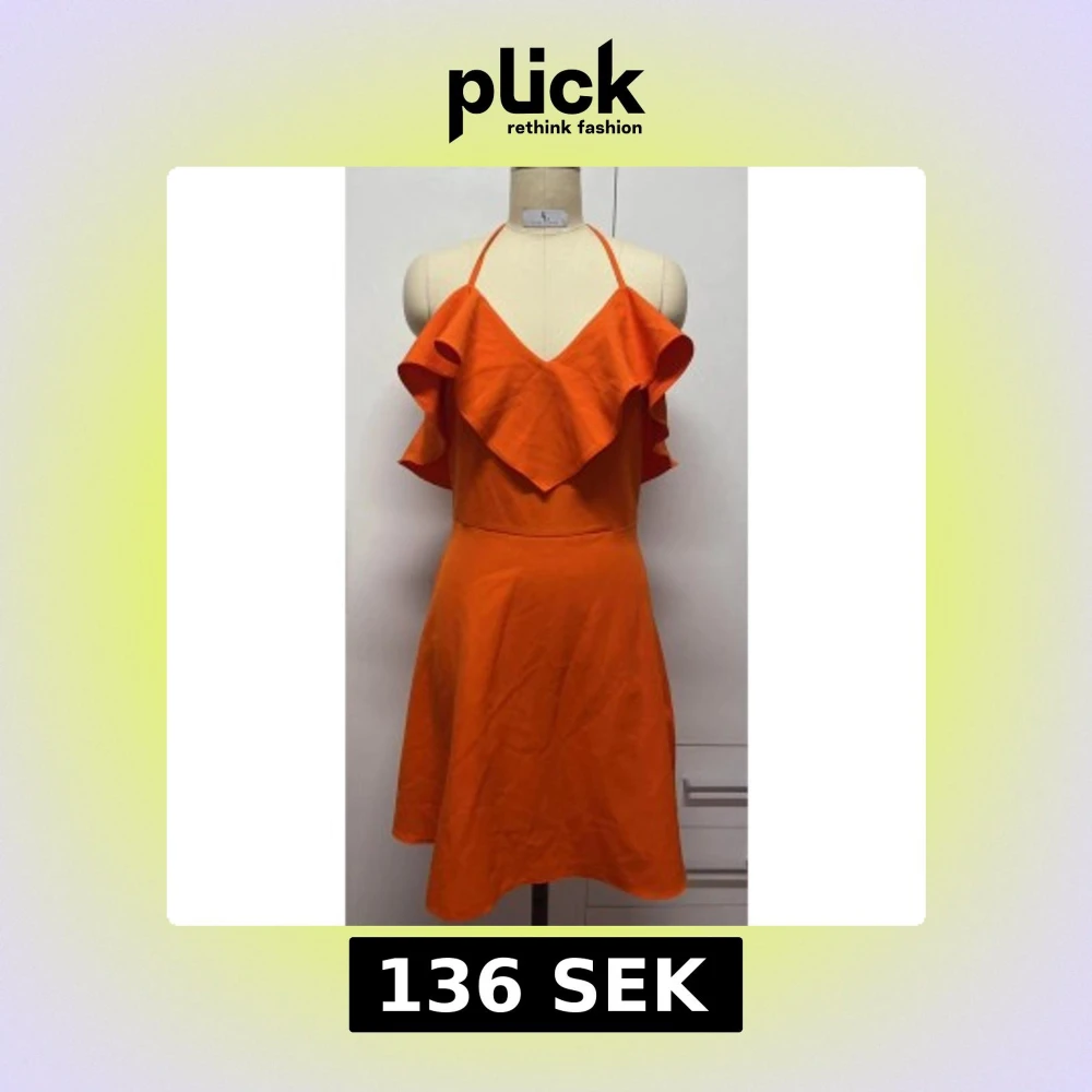 Snygg orange klänning med volangdetalj framtill och korsade band i ryggen. Perfekt för sommarens fester. Axelbandslös design med knytning i ryggen för en justerbar passform.