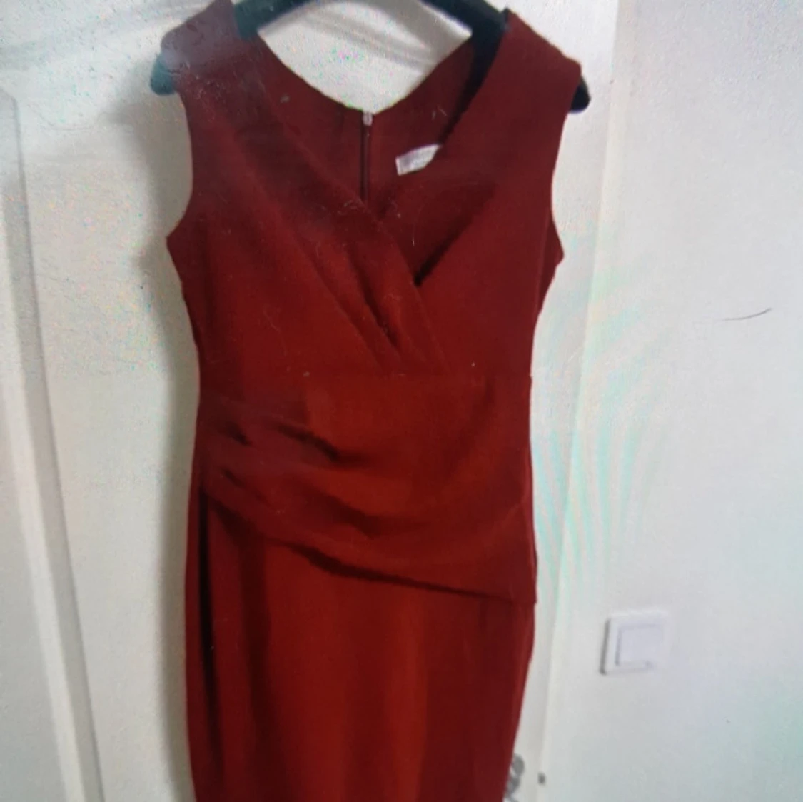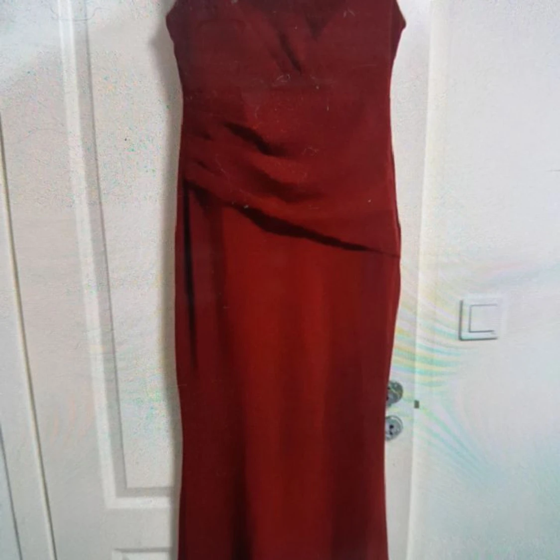 Snygg vinröd långklänning med omlott-detalj över bysten och markerad midja. Ärmlös modell med dragkedja i ryggen. Perfekt för dig som vill sticka ut med en elegant och stilren look.