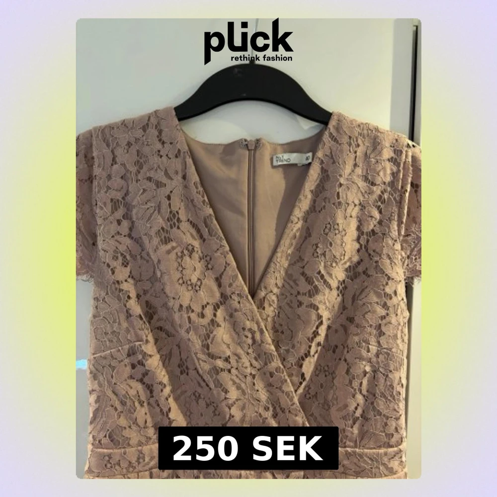 Supersöt ljusrosa spetsklänning från NLY Trend med v-ringning och omlott framtill. Klänningen har korta ärmar, markerad midja och ett vackert blommigt spetsmönster. Dragkedja i ryggen och lätt utställd kjol för en feminin siluett.