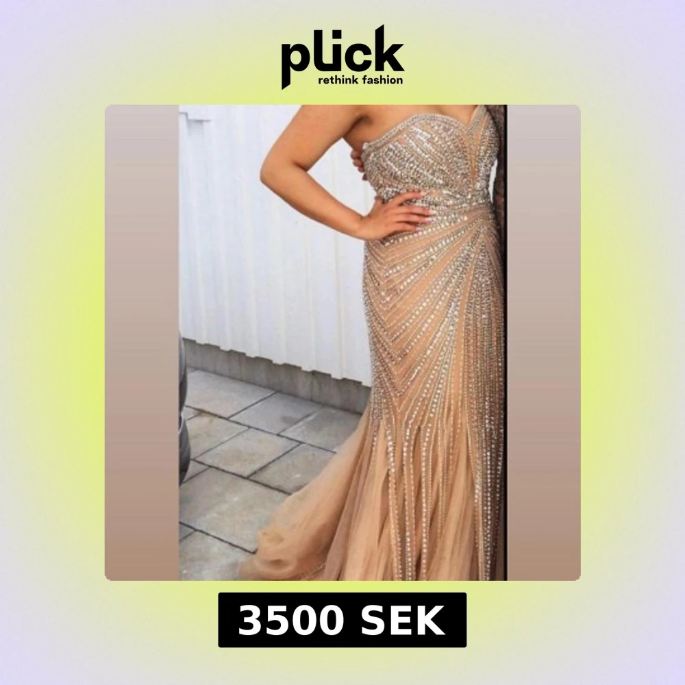 Säljer en magisk champagnefärgad långklänning med glittriga paljetter och pärlor i ett snyggt mönster. Klänningen är axelbandslös och har en v-ringad överdel som ger en elegant siluett. Perfekt för bal eller bröllop du kommer verkligen sticka ut! Märket terani couture i storlek 40 men går att sy in. Inköpspris 9500 säljer för 3500 pris kan diskuteras