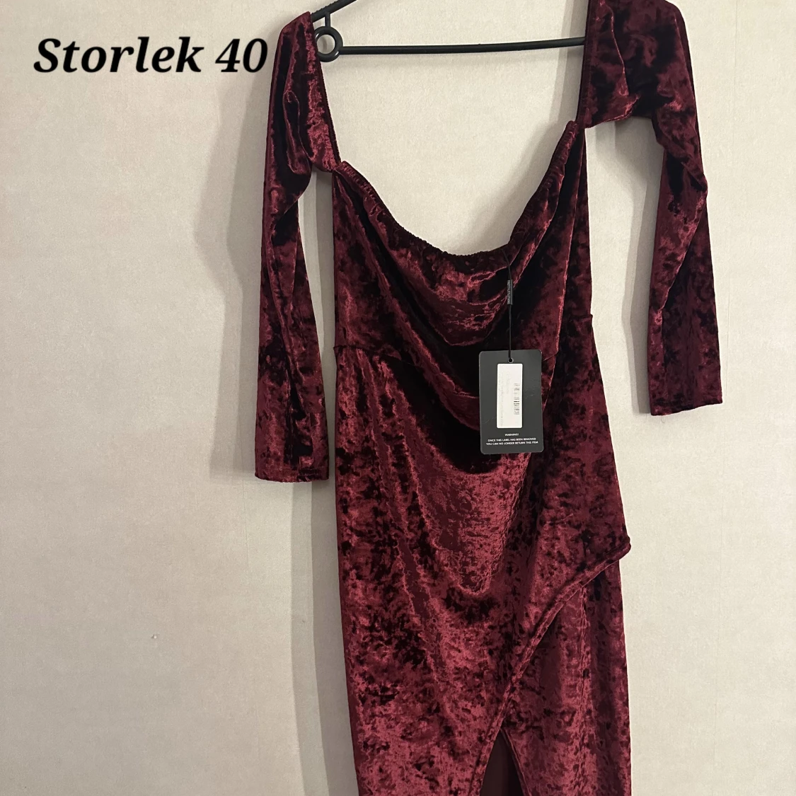 Röd klänning i sammetsliknande material från Prettylittlething. Oanvänd, har fortfarande etikett kvar.