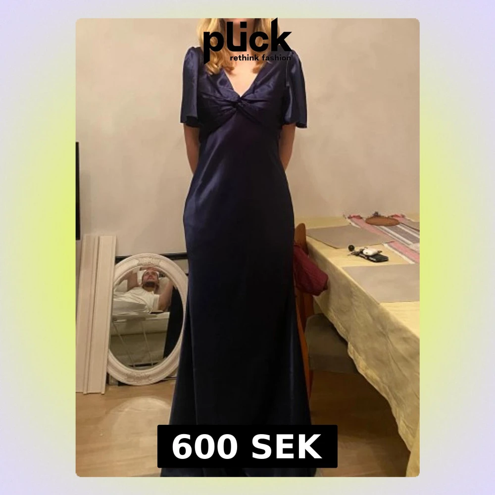 Mörkblå balklänning i storlek 40 tall passar någon som är 185 👠 Använd en gång! Obs bandet på bild två följer inte med!!