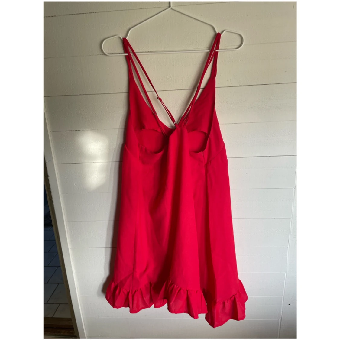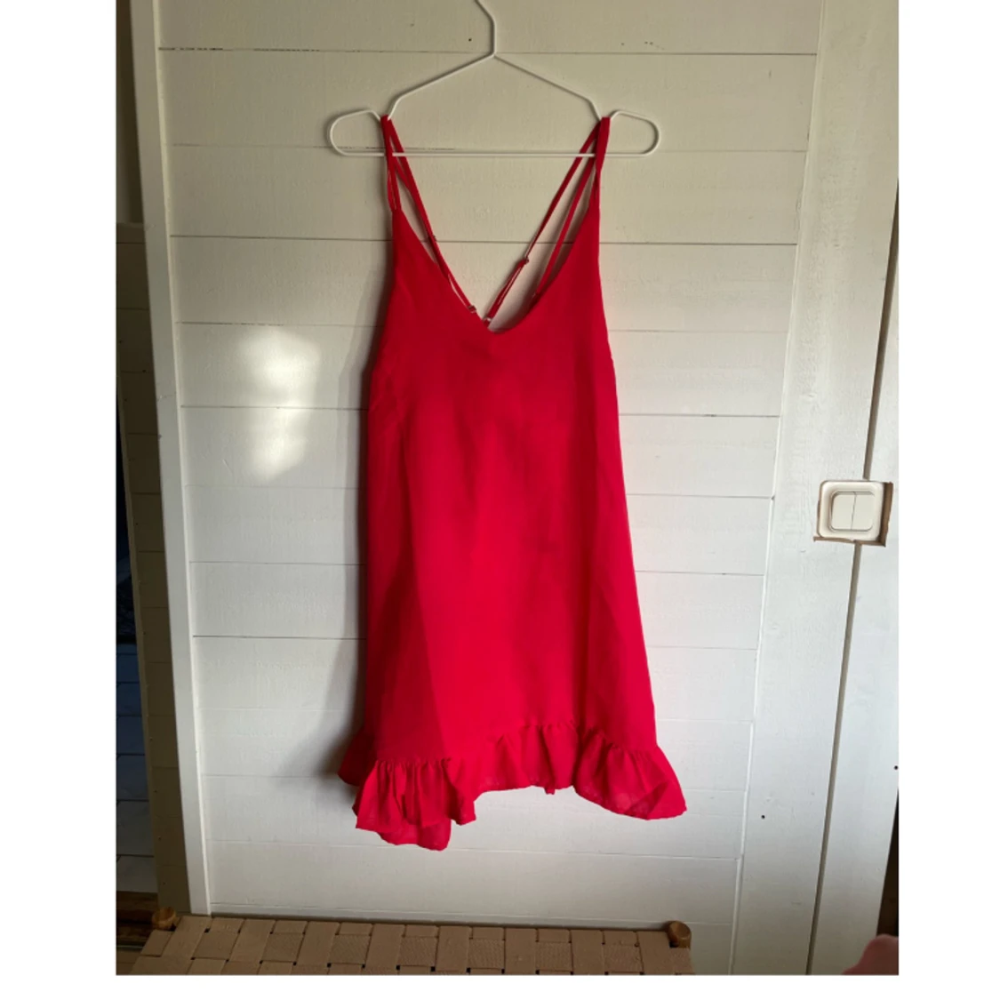 Kort sommarklänning med korsad rygg. Justerbara band. Använd ett fåtal gånger. Från bubbleroom!