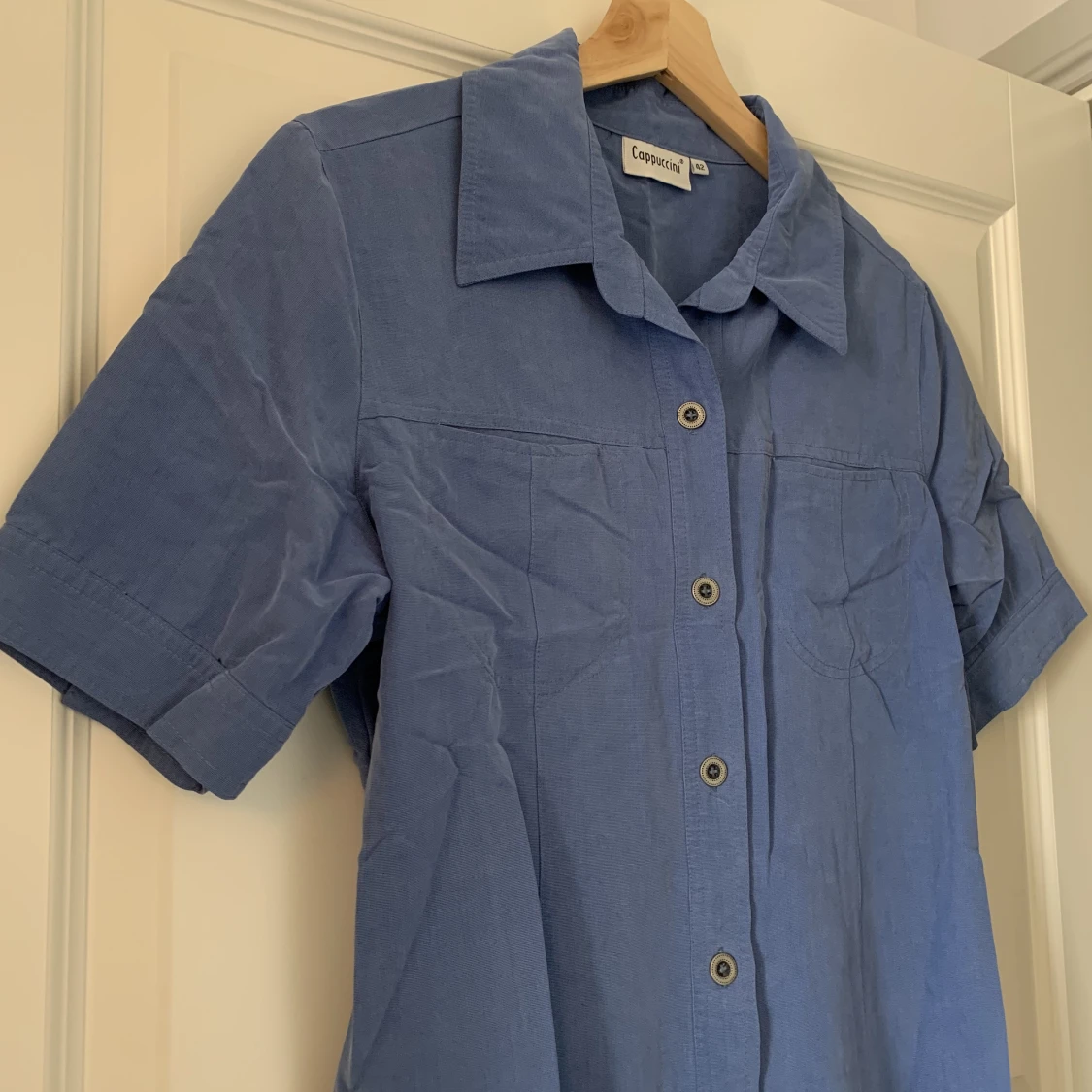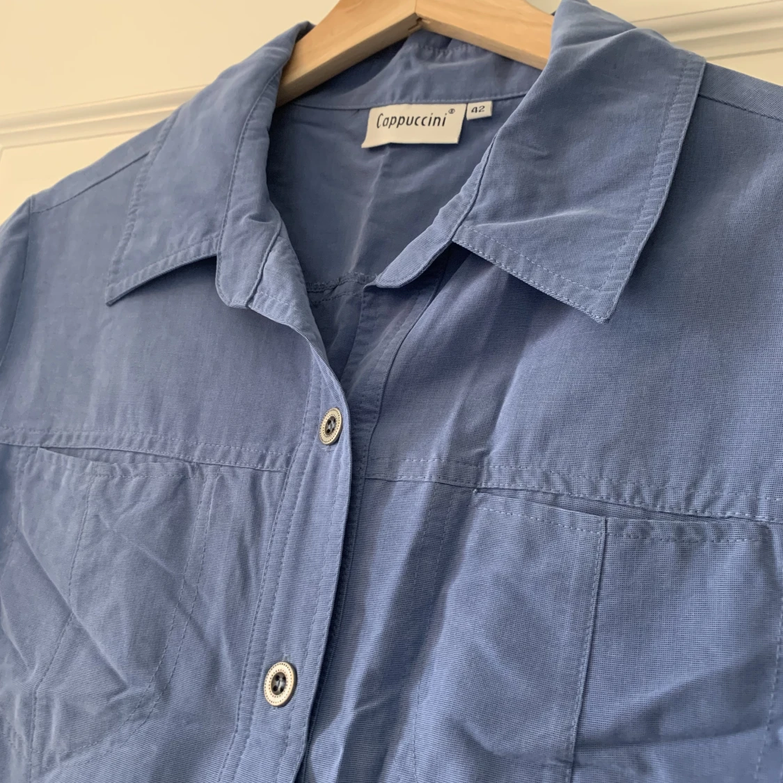 Blå vintageklänning med knappar. Midi längd. Fin siluett.