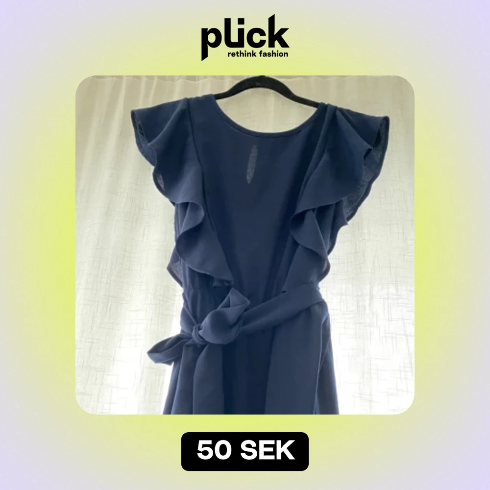 Mörkblå klänning Shein använd fåtal gånger, i nyskick. Storlek står ej storlek men troligt 42. Katt finns i hemmet