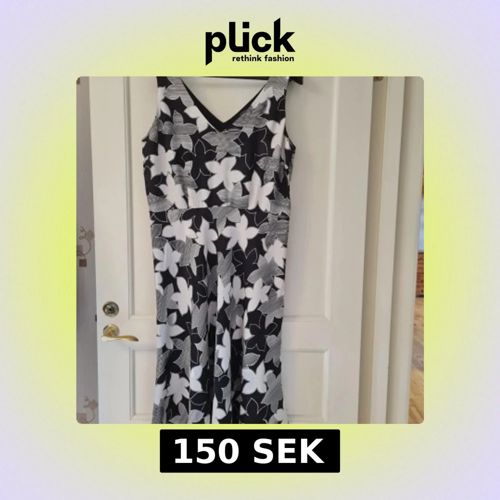 Säljer en svartvit långklänning från InWear med stora blommiga mönster och v-ringad hals och rygg. Klänningen är ärmlös och har en diskret dragkedja i sidan. 100% silk. Klänningen saknar bälte. Storlek 44. Kan hämtas i Vallentuna.