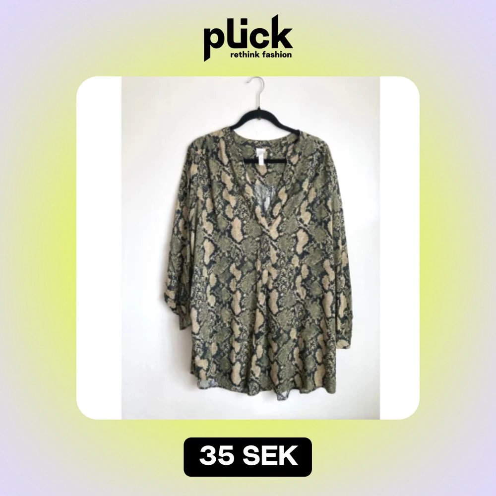 Ormmönstrad tunika, 44 L, blus, djurmönstrad, grön, beige, bohemisk, boho, khaki, brun