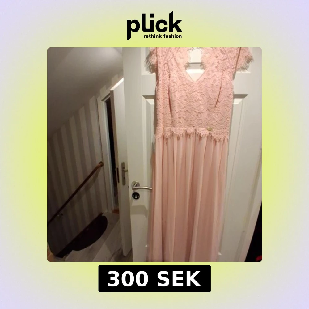 Superfin ljusrosa långklänning med spets upptill och v-ringning. Klänningen har korta ärmar och ett flowy kjolparti i tunt tyg. Spetsdetaljerna ger en romantisk känsla och ryggen har en snygg öppning. Perfekt för speciella tillfällen!