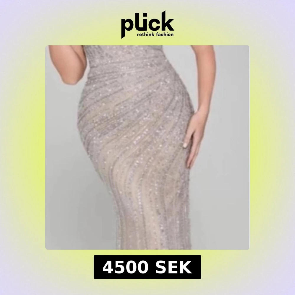 Supersnygg långklänning i champagnefärg med glittriga detaljer och figurnära passform. Klänningen har ett elegant mönster av glittrande pärlor och paljetter som ger en lyxig känsla. Perfekt för dig som vill sticka ut på bal eller fest.