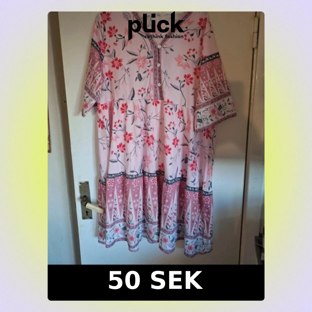 Supersöt kortklänning i ljusrosa med blommigt mönster i rött, vitt och svart. Klänningen har v-ringning med knappar framtill, korta ärmar och volangkant nertill. Perfekt för sommarens alla tillfällen! Djur finns i hemmet.