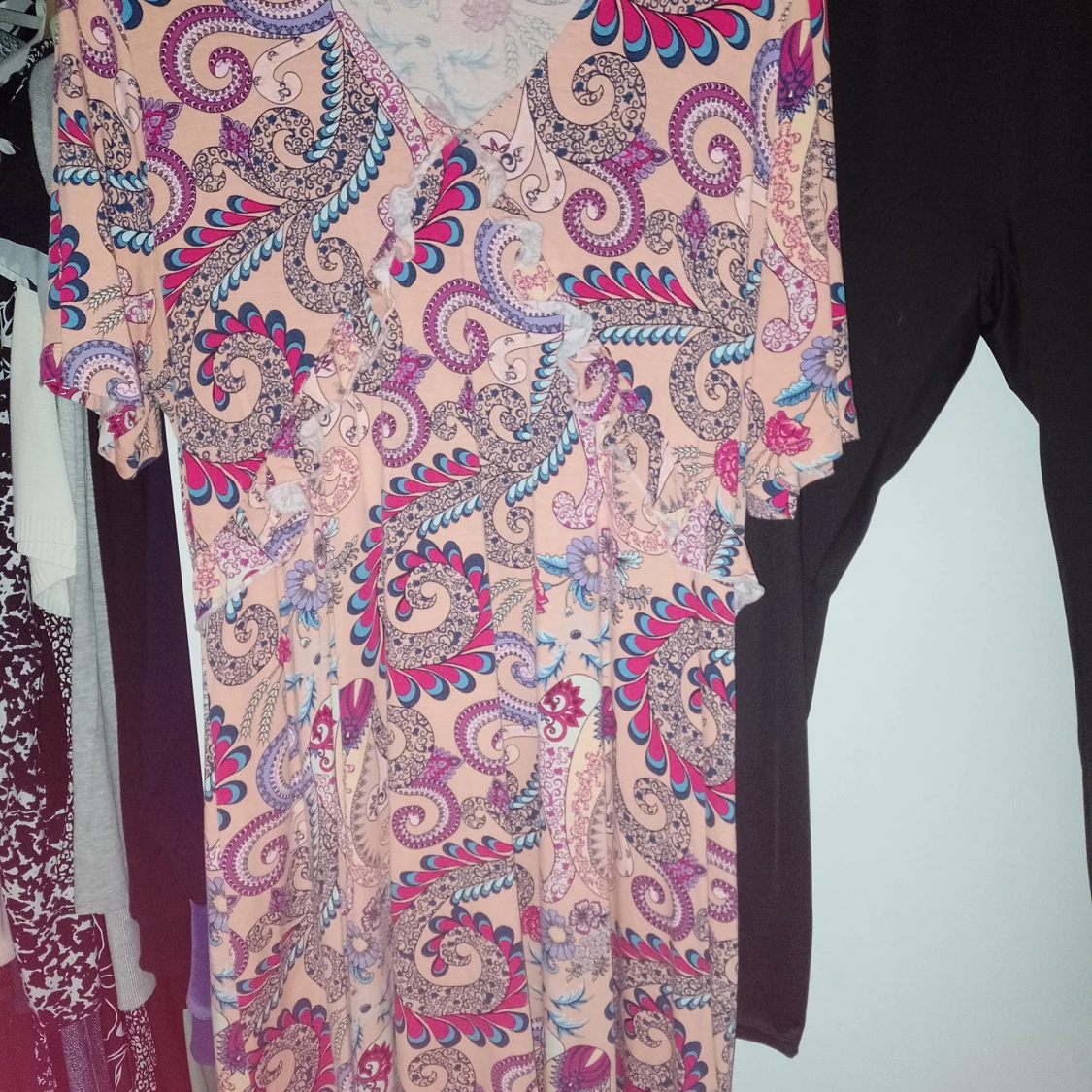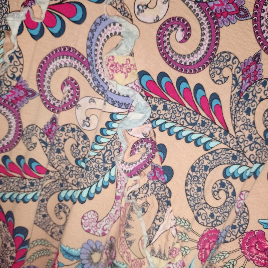 Superfin kortklänning med färgglatt paisleymönster i rosa, blått och lila på ljus botten. Klänningen har v-ringning, volangdetaljer framtill och korta ärmar. Perfekt för dig som gillar boho-vibes och vill sticka ut med ett unikt print.