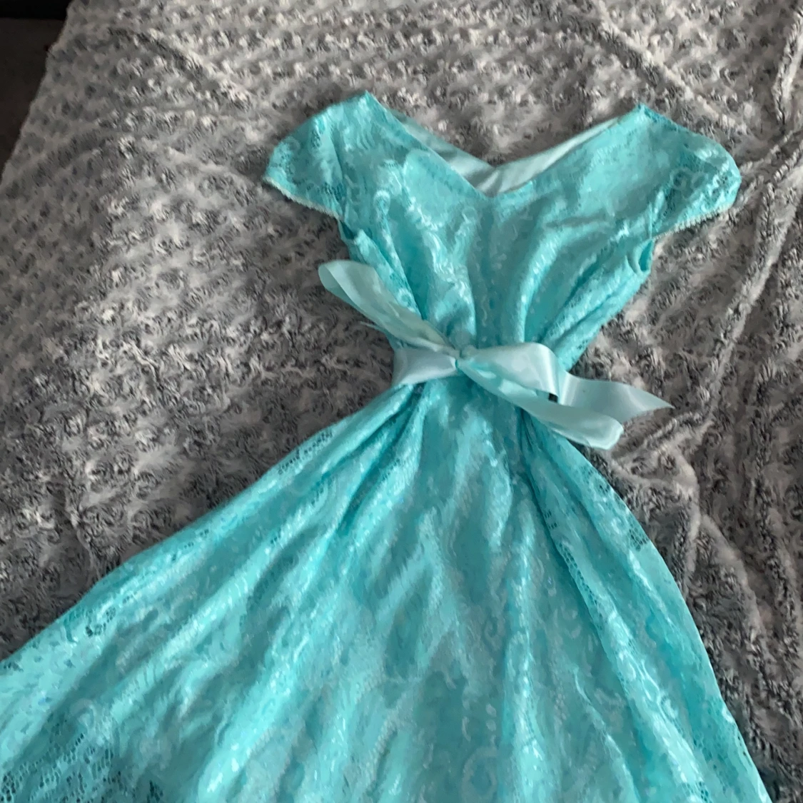 En jätte fin blå klänning som tyvärr har fått en fläck som ej går bort därav det billiga priset, köparen står för frakten