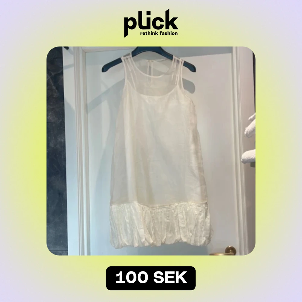 En vit ärmlös klänning med volangdetalj vid nederkanten. Klänningen har en lös passform och är tillverkad i ett lätt och luftigt material, vilket gör den perfekt för varmare väder.underklänning då klänningen är transparent. inte kritvit.