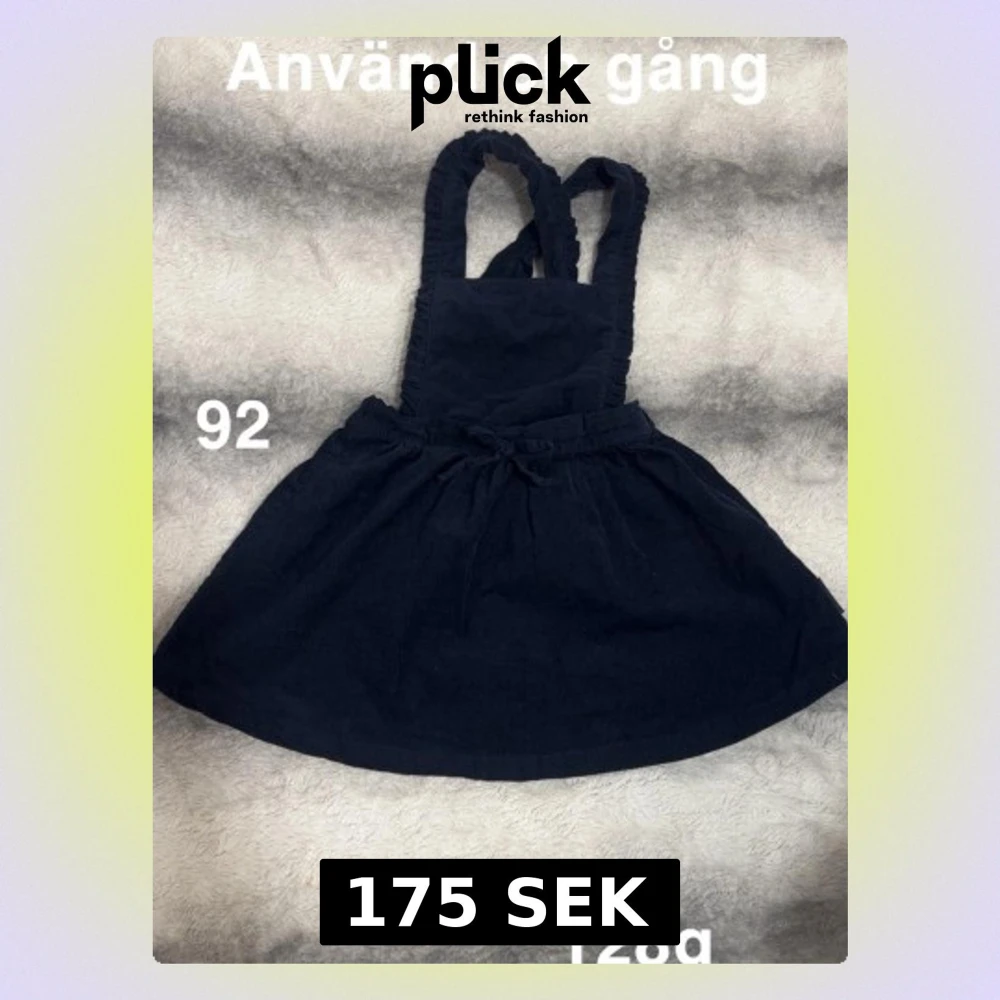 Supersöt mörkblå klänning i manchester med volangprydda axelband och liten rosett i midjan. Perfekt för dig som gillar klassisk stil med en twist. Klänningen passar perfekt till både t-shirt och blus under.🌸 Använd en gång. Storlek 92
