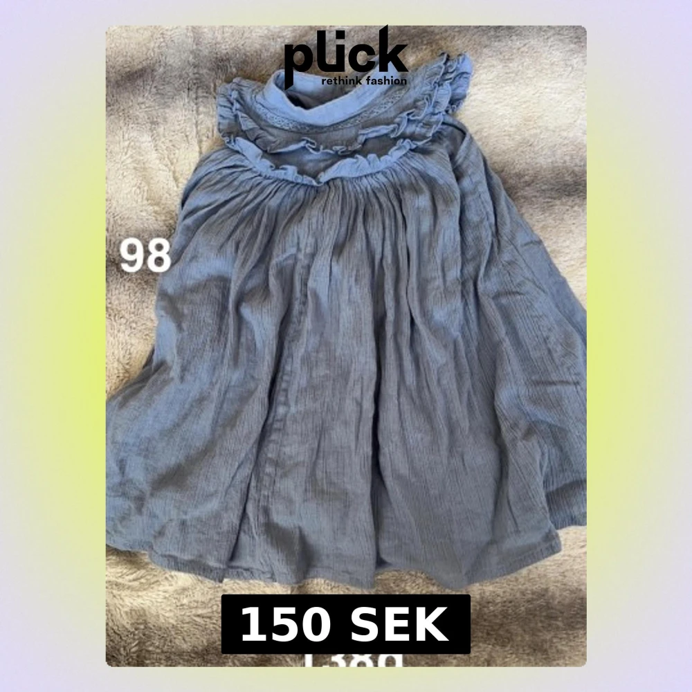 Supersöt blå klänning med volanger och hög krage. Klänningen har ett luftigt fall. Perfekt för dig som gillar romantiska detaljer och en avslappnad look.🌸 Fint använt skick. Storlek 98