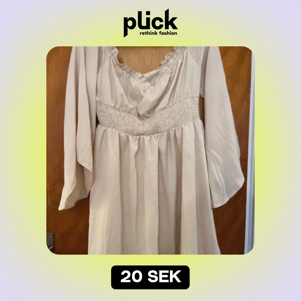 Säljer en superfin beige klänning från Shein. Den har långa ärmar och en smockad midja som ger en snygg passform. Klänningen är i ett lätt och luftigt material, perfekt för sommar och vår. Den har också en söt volangdetalj vid halsen. Katt finns i hemmet, men allt jag säljer är nytvättat och rollat✨