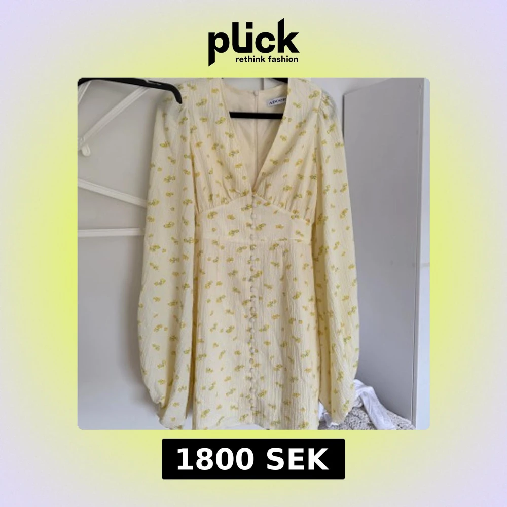 Jättefin kort klänning från Adoore i ljusgul nyans med små gula blommor. Klänningen har v-ringning, långa puffärmar och knappar framtill. Den är i storlek 32, och endast använd en gång. Säljer pågrund av att jag har en till💕💕Pris kan diskuteras!