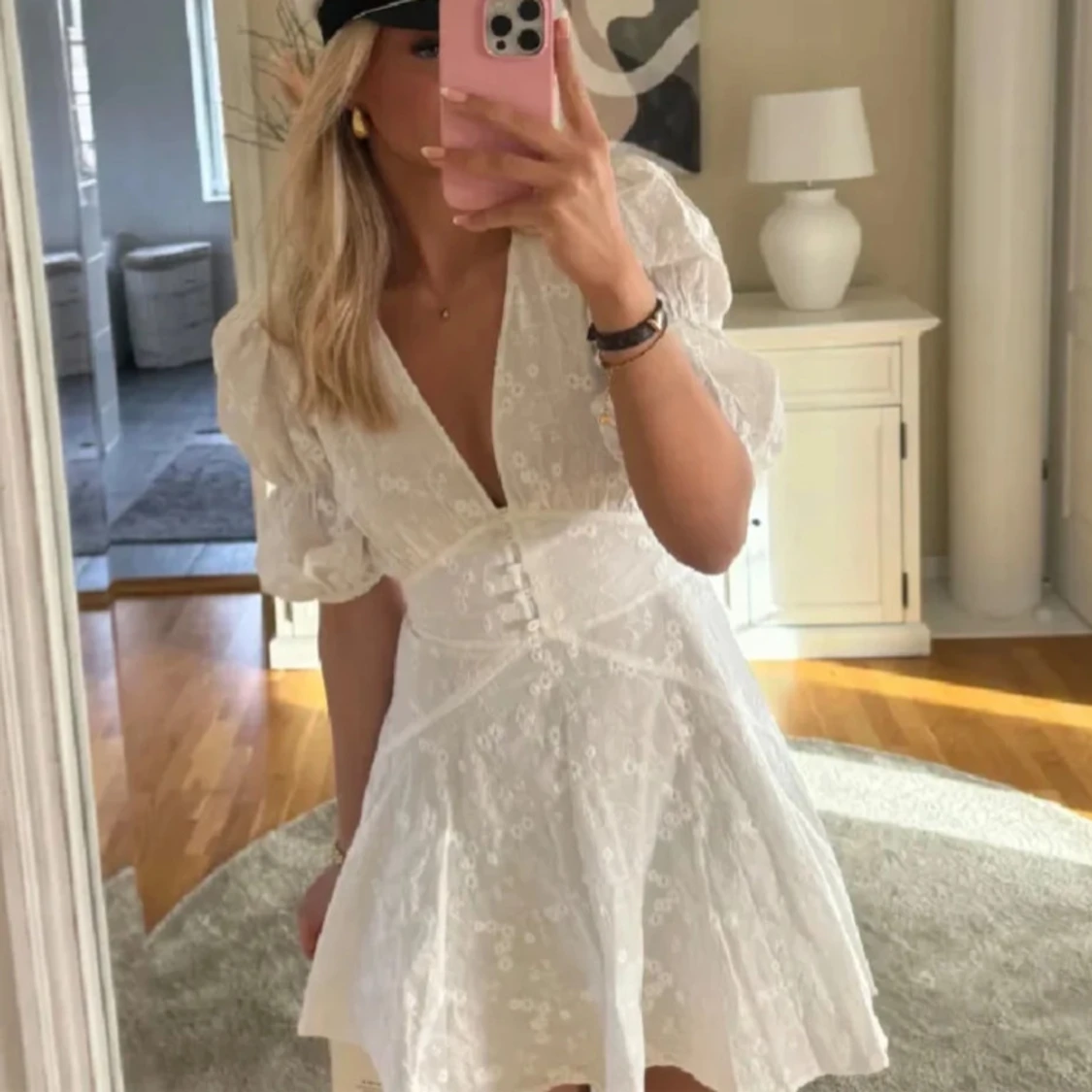 Superfin vit Adoore klänning. Aldrig använd med prislappen kvar. Nytt pris 1495kr säljer för 1000kr. Vill bara bli av med den.