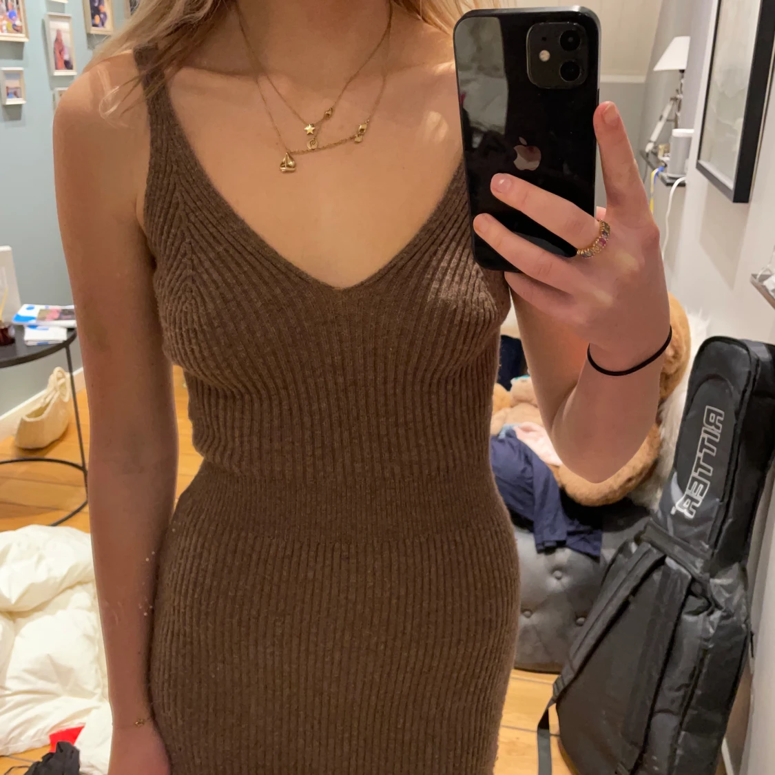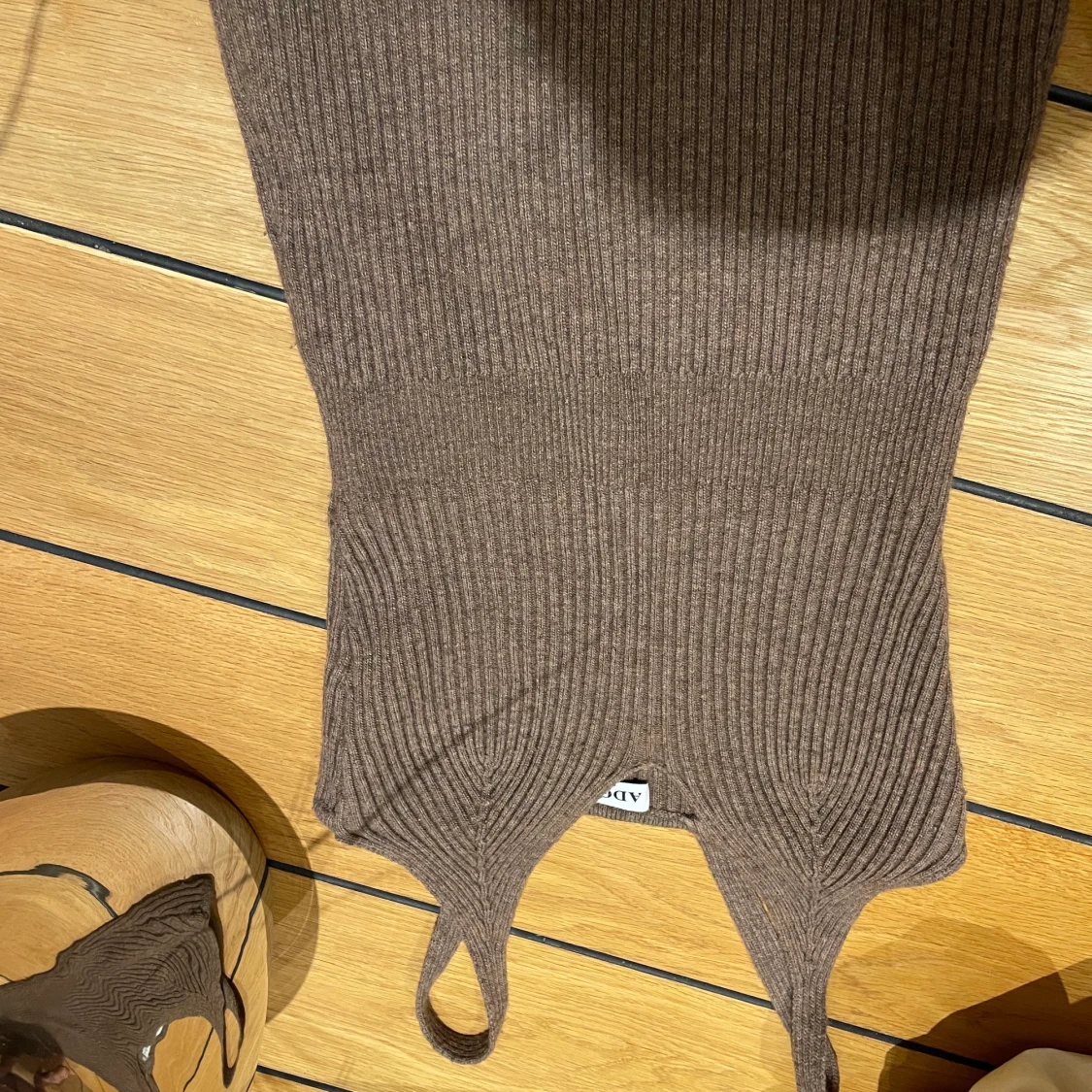 Säljer denna super snygga bruna stickade klänningen från adoore, den är väldigt stretchig, så passar många storlekar - jag har vanligtvis s,xs
